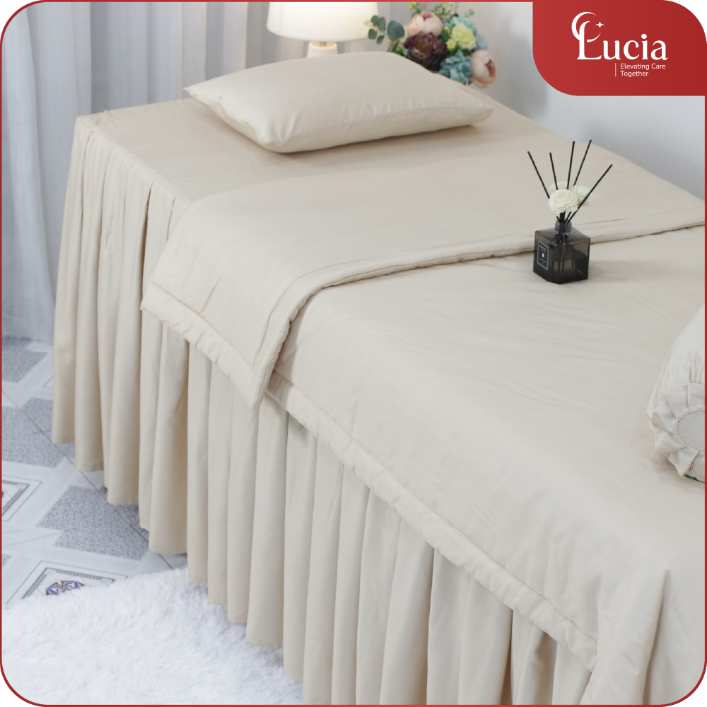 Hiểu rõ điều đó, Lucia Bedding đã cho ra mắt bộ chăn ga Spa chất liệu Tencel Micro, dòng sản phẩm được phát triển dành riêng cho những không gian spa và clinic chú trọng đến trải nghiệm cảm xúc của khách hàng. Đặc biệt với tông màu be sang trọng, sản phẩm còn giúp che khuyết điểm hiệu quả, hạn chế lộ vết bẩn và luôn giữ được vẻ gọn gàng, sạch sẽ trong suốt quá trình sử dụng. Bên cạnh đó, mỗi sợi vải đều được chọn lọc kỹ lưỡng và dệt theo công nghệ hiện đại giúp tạo nên chất liệu mềm mượt, thoáng khí và thân thiện tuyệt đối với làn da.
