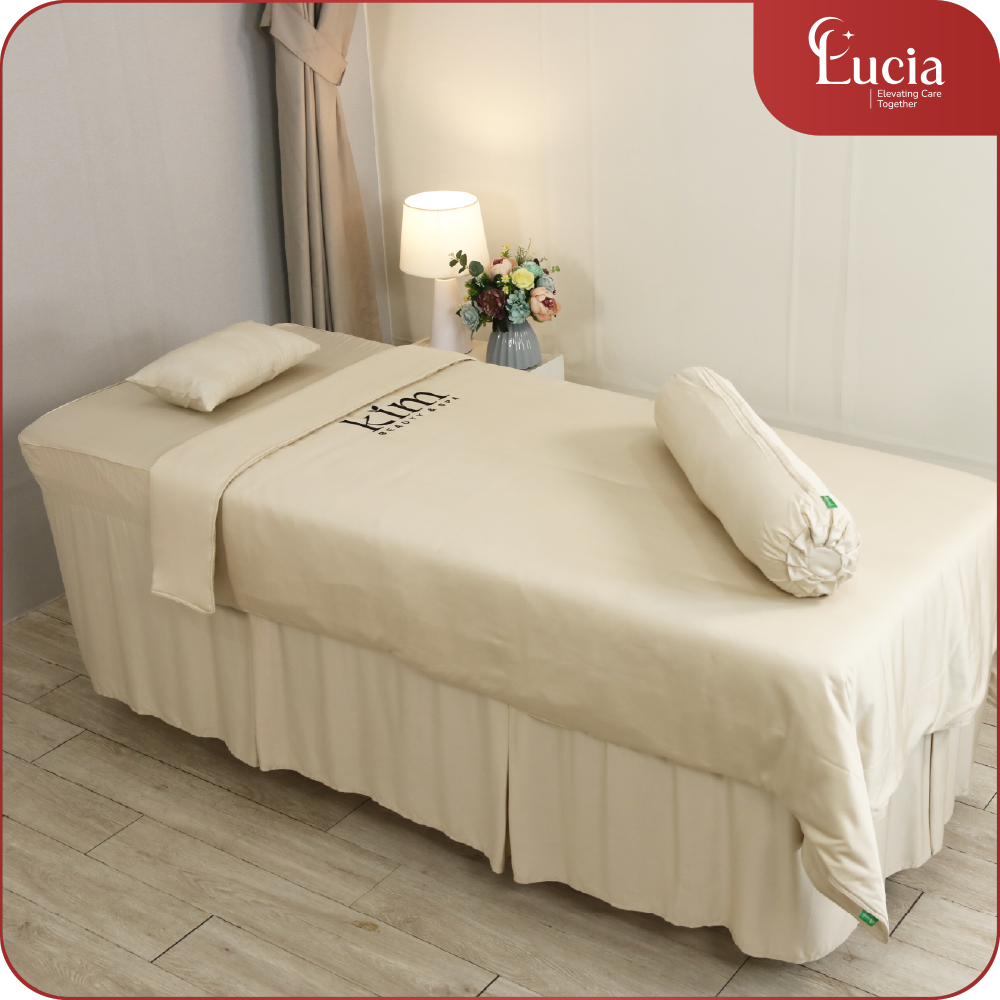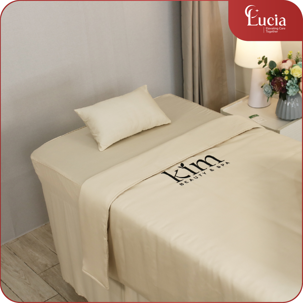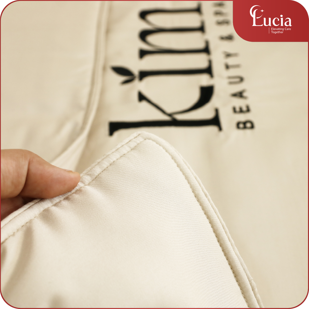 Đặc biệt, Lucia Bedding còn là nhà cung cấp chăn ga gối chuyên dụng cho spa – thẩm mỹ viện – clinic. Chúng tôi hiểu rằng spa là không gian yêu cầu sự thư giãn, sạch sẽ và cảm giác chạm tinh tế nên ưu tiên sử dụng các dòng vải mềm mịn, ít nhăn, thấm hút tốt và bền màu. Từ ga phủ giường, topper, drap quấn, khăn phủ body, khăn đắp mặt, khăn quấn tóc cho đến áo choàng spa – tất cả đều được thiết kế phù hợp từng liệu trình và phong cách không gian. Các sản phẩm cũng được cá nhân hóa theo nhận diện thương hiệu, bao gồm thêu logo, phối màu, may viền hoặc dệt riêng theo yêu cầu, giúp mỗi spa tạo dấu ấn riêng và nâng tầm trải nghiệm khách hàng.