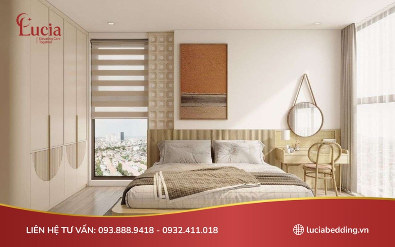 Ngoài ra, màu sắc giường cũng sẽ thiên về tông màu trung tính, giúp phòng ngủ trở nên thông thoáng, rộng rãi và tinh tế hơn.