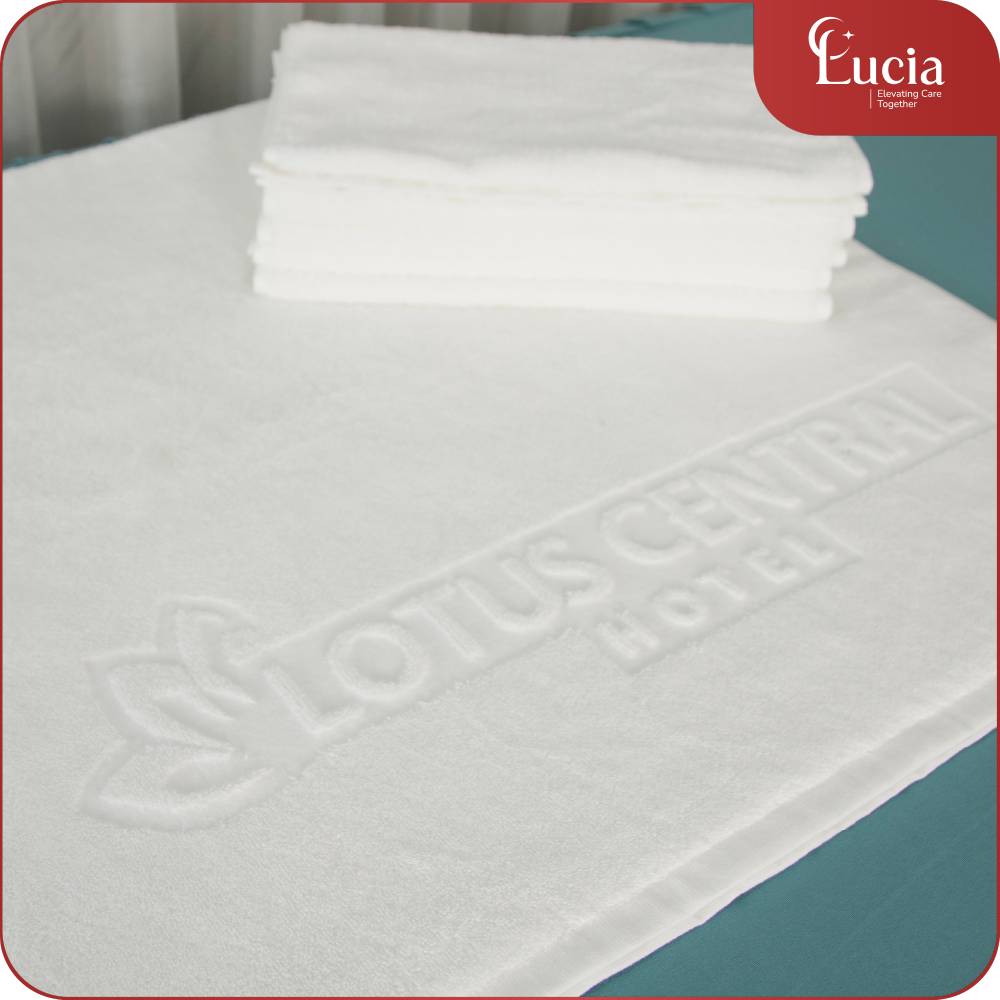 Mỗi chiếc khăn dệt logo khách sạn & spaLucia Bedding không chỉ là một sản phẩm tiện ích, mà còn là minh chứng cho tiêu chuẩn chất lượng và sự tinh tế trong từng sợi vải: