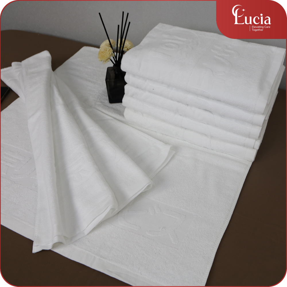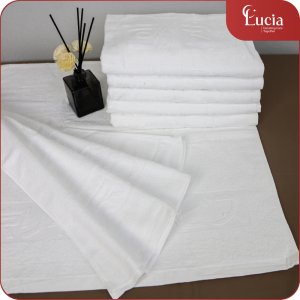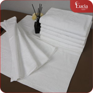 Chất liệu: 100% cotton, dệt bông sợi se đôi 32/2s, sợi bông 100% cotton tự nhiên nhập khẩu từ mỹ. Sợi Khăn cotton được trải qua công đoạn se đôi sợi trước khi dệt để tăng độ bền cho sản phẩm. Ngoài ra việc se đôi sợi sẽ giúp lọc đi sơ bông ngắn giúp cho sản phẩm khi sử dụng sẽ hạn chế được đổ bông so với sợi đơn thông thường. Vì vậy đáp ứng được yêu cầu của ngành khách sạn.