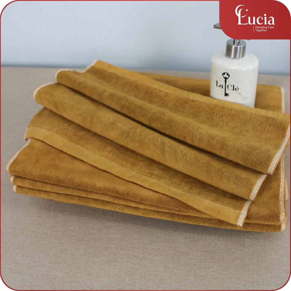 Chất liệu: 100% cotton, dệt bông sợi se đôi 20/4s, sợi bông 100% cotton tự nhiên nhập khẩu từ mỹ. Sợi Khăn cotton được trải qua công đoạn se đôi sợi trước khi dệt để tăng độ bền cho sản phẩm. Ngoài ra việc se đôi sợi sẽ giúp lọc đi sơ bông ngắn giúp cho sản phẩm khi sử dụng sẽ hạn chế được đổ bông so với sợi đơn thông thường. Vì vậy đáp ứng được yêu cầu của ngành khách sạn.