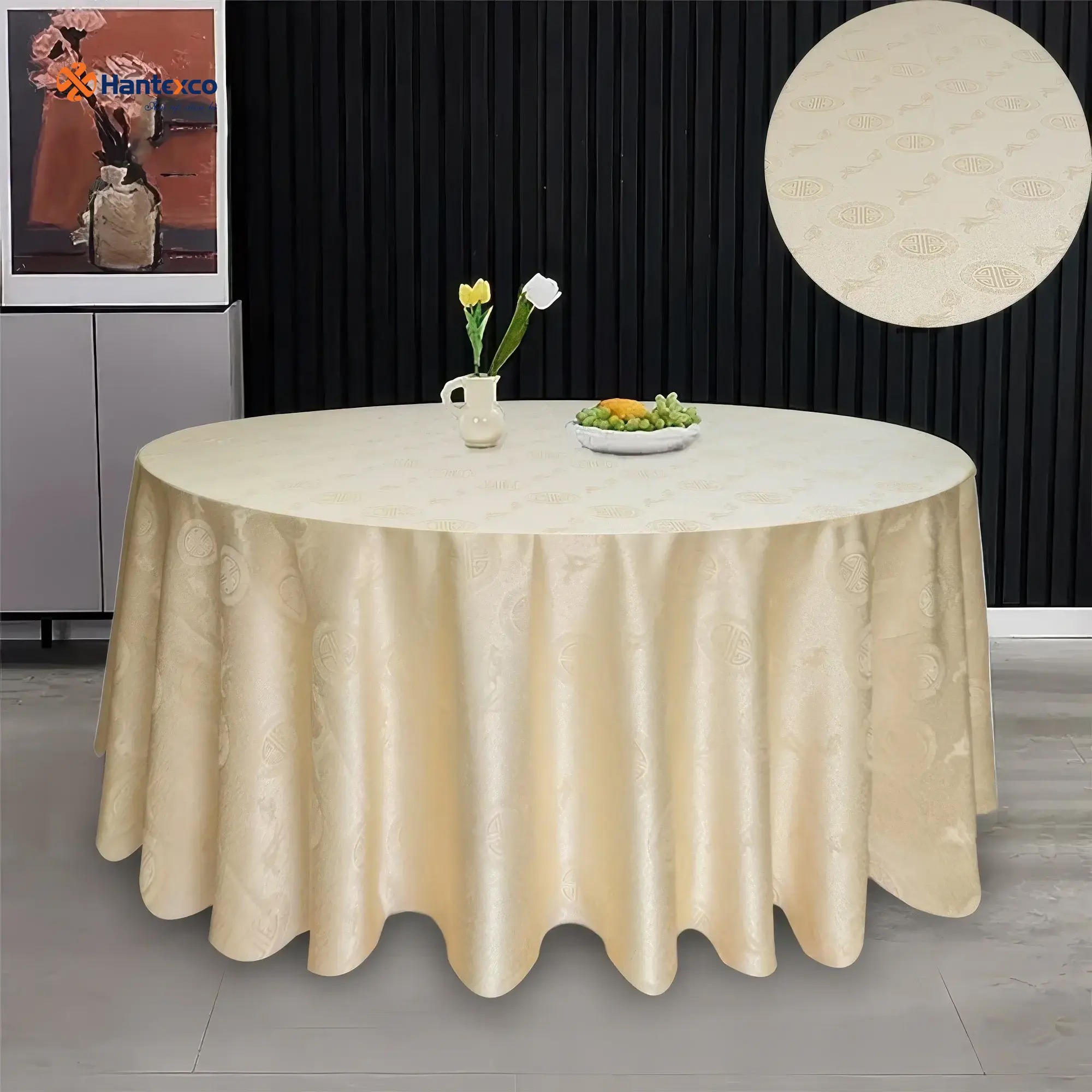 - Tên sản phẩm: Khăn trải bàn tiệc cưới màu kem hoa văn tròn phủ rủ