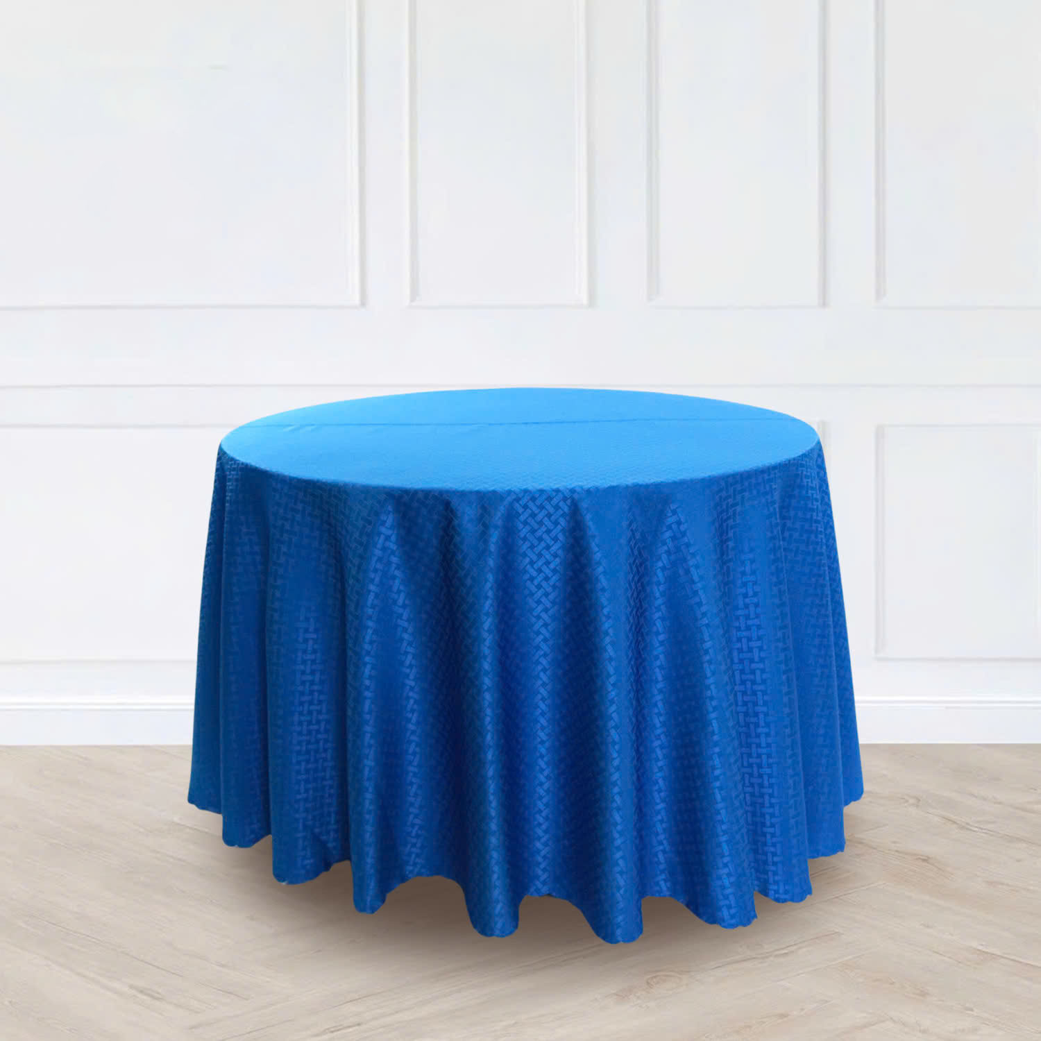 Với tone xanh dương dễ gây ấn tượng và kiểu phủ tròn mềm mại, sản phẩm có thể sử dụng linh hoạt trong nhiều bối cảnh như tiệc cưới, gala dinner, tiệc chiêu đãi hoặc các chương trình tổ chức tại nhà hàng – khách sạn. Khi dùng đồng bộ theo số lượng lớn, khăn trải bàn giúp tổng thể không gian trở nên nổi bật và bắt mắt hơn rõ rệt.