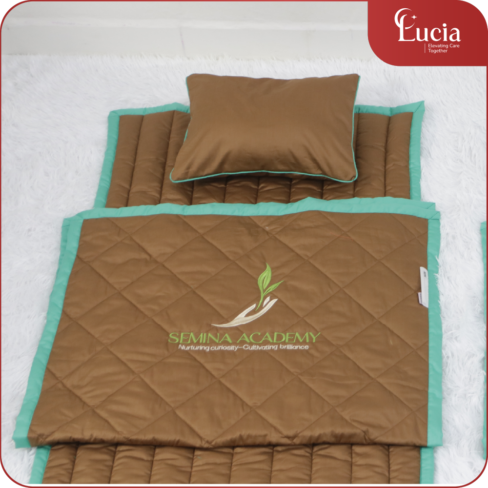 Bộ mền gối học sinh trường học được may theo yêu cầu của mỗi trường học về kiểu dáng, kích thước và đáp ứng màu sắc theo tone chủ đạo của trường. Phối màu sắc sinh động để hài hòa với màu sắc nhận diện của trường. Đặc biệt Logo thương hiệu của trường được thêu tỉ mỉ sắc nét trên mền gối để tạo nên sự đồng nhất thương hiệu, nâng cao uy tín chuyên nghiệp của trường.