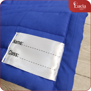 Mỗi sản phẩm đều được may tag để ghi tên các bé lên bộ mền gối.