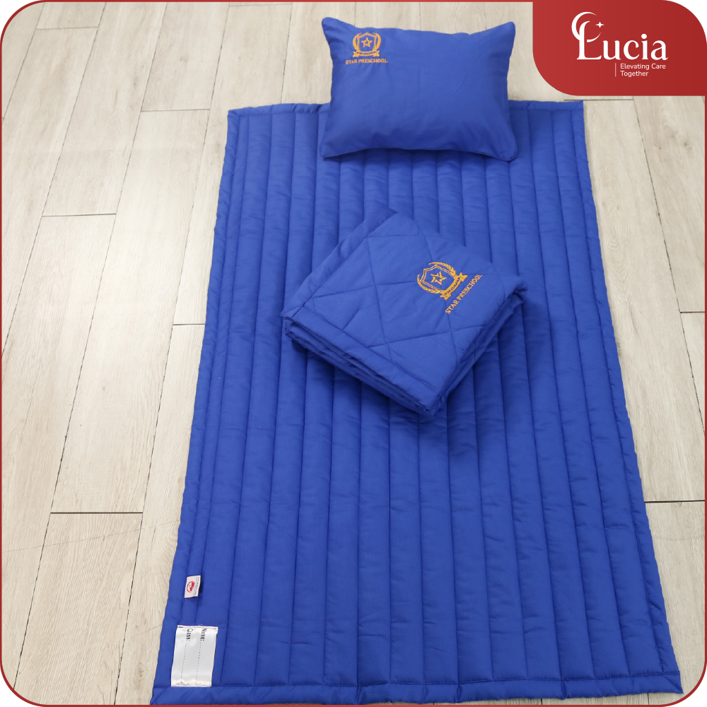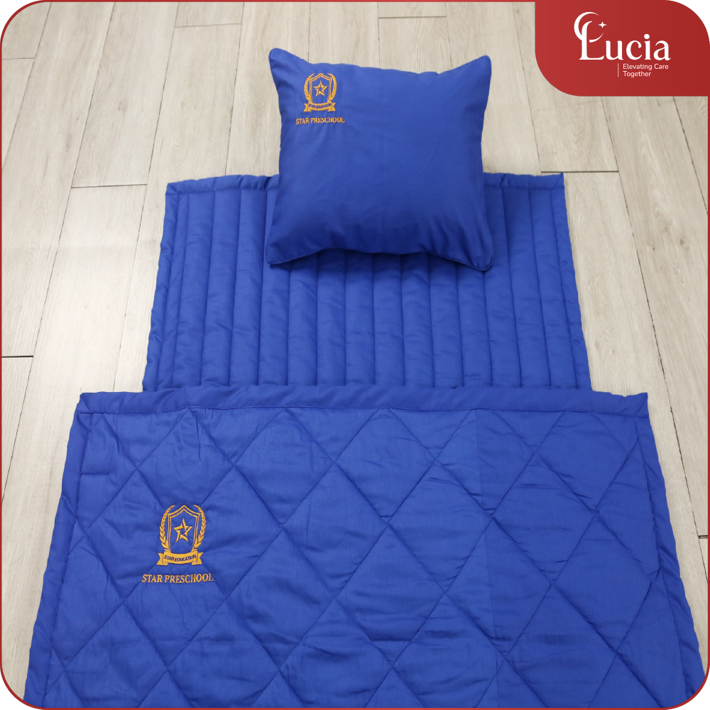 Bộ mền gối học sinh trường học được may theo yêu cầu của mỗi trường học về kiểu dáng, kích thước và đáp ứng màu sắc theo tone chủ đạo của trường. Phối màu sắc sinh động để hài hòa với màu sắc nhận diện của trường. Đặc biệt Logo thương hiệu của trường được thêu tỉ mỉ sắc nét trên mền gối để tạo nên sự đồng nhất thương hiệu, nâng cao uy tín chuyên nghiệp của trường.