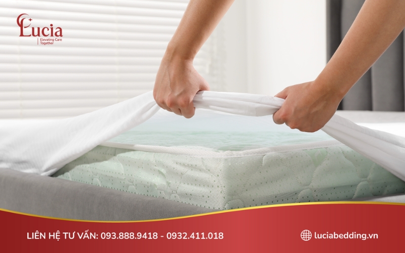 - Bảo vệ bề mặt nệm: Ga trải giường giúp hạn chế bụi bẩn, mồ hôi và các tác nhân bên ngoài tiếp xúc với nệm, từ đó giữ cho nệm luôn được sạch sẽ trong quá trình sử dụng.